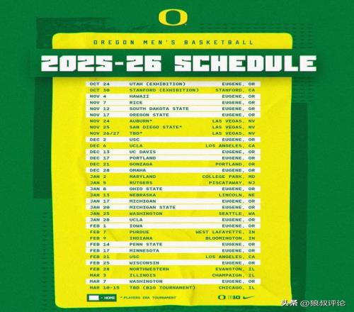 俄勒岡大學發布的賽程: