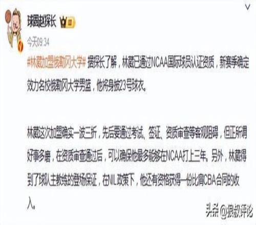 媒體人趙探長發文點評說道:林葳這次加盟確實一波三折,先後要通過考試、簽證、資質審查等客觀阻礙,但正所謂好事多磨,在資質審查通過後,可以確保他最多能夠在NCAA打上三年。另外,林葳得到了球隊主教練的登場保證,在NIL政策下,他還有資格獲得一份比肩CBA合同的收入。