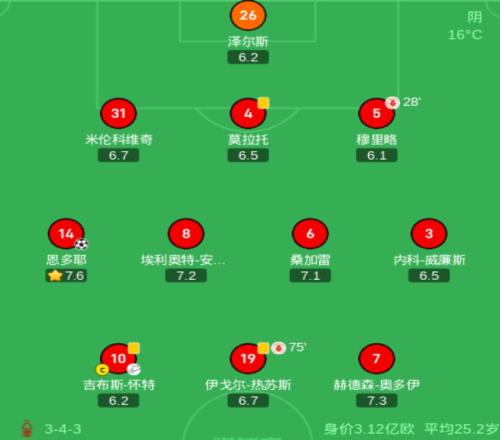 本場比賽諾丁漢森林排出了343陣型。吉布斯-懷特、伊戈爾-熱蘇斯和赫德森-奧多伊組成進攻三叉戟。恩多耶、安德森、桑加雷和內科-威廉斯4中場聯袂出擊。米倫科維奇、莫拉托和穆裏略3後衛首發出戰。澤爾斯擔任首發門將。克裏斯-伍德和多明格斯坐在替補席待命。