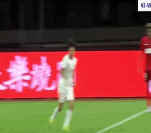 第43分鍾,茹子楠左路內切之後右腳勁射,韓鎔澤撲救不及,皮球直入死角,梅州客家取得領先。