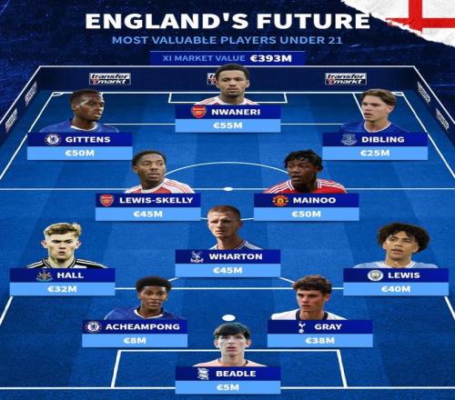 德轉英格蘭U21最貴陣容:恩瓦內裏、梅努、劉易斯等人在列_24直播網