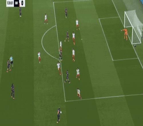 第13分鍾,巴薩前場打出流暢配合,亞馬爾傳球,佩德裏在禁區內橫向盤帶,突然起腳打向反角度,門將撲救不及。