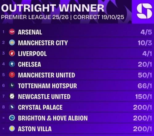 而本場“雙紅會”結束後,相關機構也更新了英超最新奪冠賠率,阿森納在英超3連勝並且3分領跑後,以5賠4的賠率成為最大的奪冠熱門。