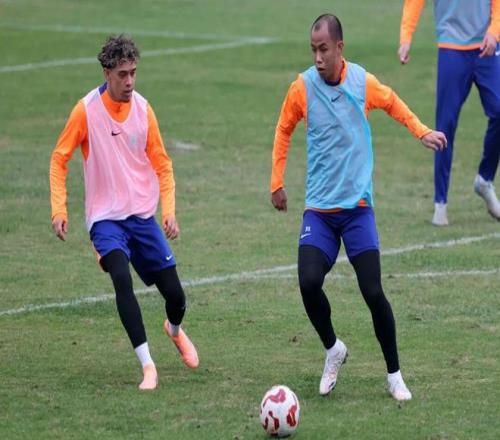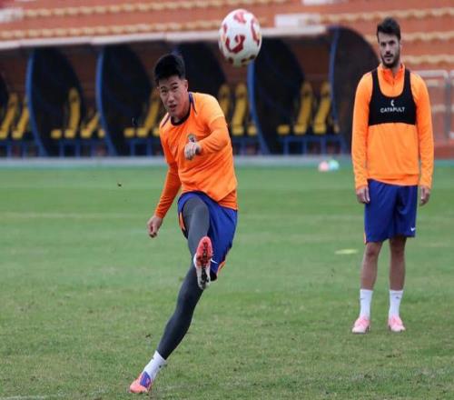 山東泰山隊積極備戰主場與上海海港隊的中超比賽