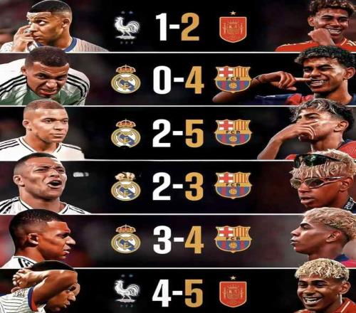 在此前的6次交鋒中,亞馬爾所在的俱樂部和國家隊均戰勝姆巴佩的球隊。