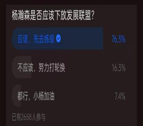 針對這一話題,超千人票選給出答案,結果超過7成的球迷認為楊瀚森應當去G聯賽練級。