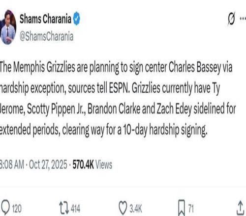 這導致灰熊隊不得不向聯盟申請10天傷病特例,以簽下查爾斯-巴西應對內線捉襟見肘的人員輪轉空缺。