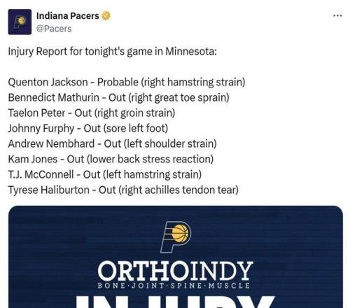 這樣的狀況也並非競爭激烈的西部特有,在對陣森林狼的比賽中,步行者隊更是一口氣7人缺陣,其中包括哈利伯頓、內姆哈德、馬瑟林與麥康奈爾等諸多核心輪轉球員。