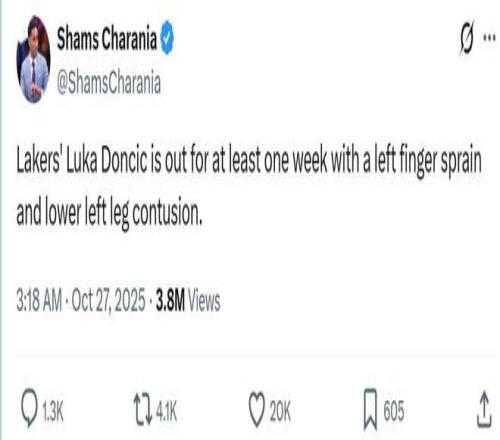 在對陣森林狼隊爆砍49分11籃板8助攻率隊取勝後,ESPN名記Shams曝出湖人後場核心東契奇遭遇左手指扭傷與左小腿挫傷,預計將缺席一周時間。