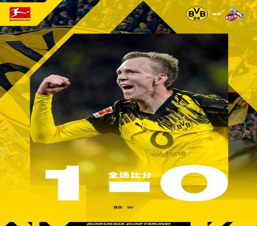 第68分鍾,多特蒙德進行換人調整,薩比策和拜爾替補上場,格羅斯和丘庫埃梅卡被換下。第90分鍾,布蘭特外圍遠射,門將飛身把球撲出。補時階段,拜爾在禁區左側抽射破門,完成絕殺!主場球迷瘋狂慶祝!最終,多特蒙德1-0擊敗科隆。多特蒙德總積分達到17分,升到第3,落後拜仁7分。