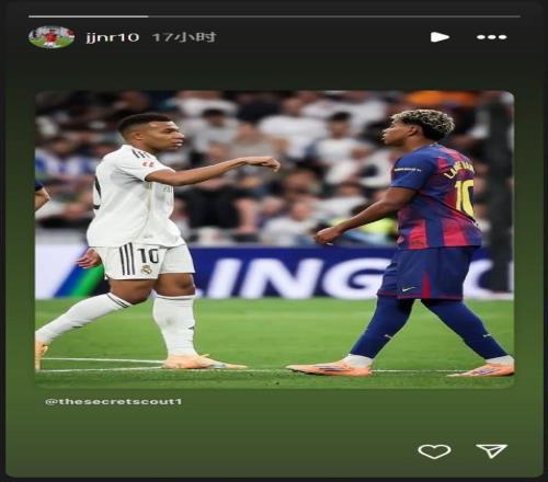 在2025/26賽季首輪西班牙國家德比戰後,曼聯新星JJ-加布裏埃爾通過社交媒體轉發了一則貼文,貼文內容為:好一張充滿張力的畫麵!姆巴佩在進球後,向亞馬爾宣告 “這裏是我的主場”。