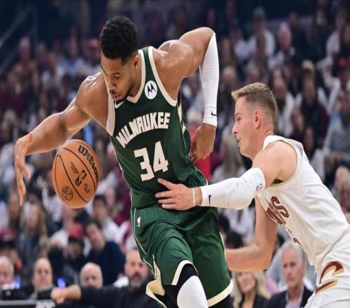 在看字母哥的表現也是拚盡了全力,麵對進攻他也是獨木難支。