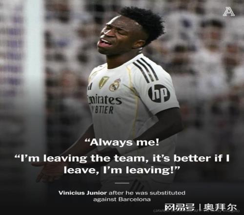 在伯納烏對陣巴薩的第72分鍾,維尼修斯被換下,這讓維尼修斯非常不滿,對著替補席大喊,“我?是我?教練,教練!是我嗎?”“總是我!我要離開球隊!我要離開,最好是我離開!”