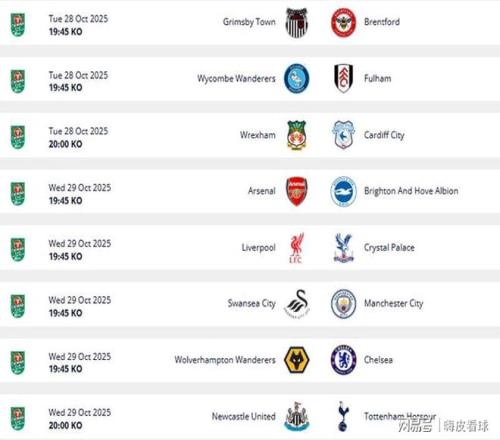 聯賽杯16強階段,隻有一場比賽沒有英超球隊參與,英冠的雷克瑟姆主場迎戰英甲的卡迪夫城。另外,富勒姆客場挑戰英甲的韋康比流浪者,以及布倫特福德客場挑戰英乙的格林斯比,兩場均為英超中遊球隊的舞台。一路高歌猛進的格林斯比,還能不能繼續神奇的表演,值得期待。
