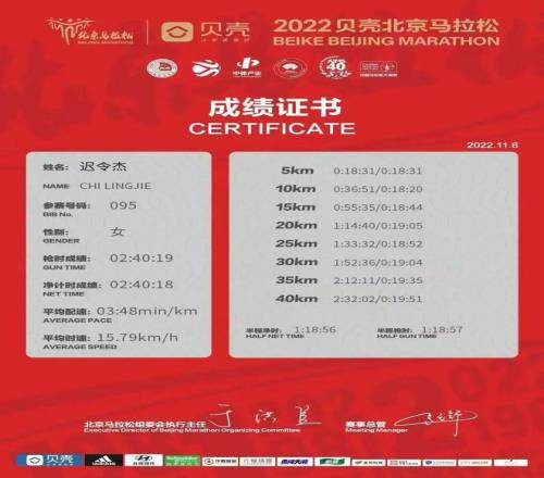 “那是我人生中,我認為最全力以赴的一場跑步。”她回憶道。遲令傑在最後一百米的衝刺中,硬是跑贏了馬拉鬆名將李美珍,最終,她的衝線成績定格在2小時34分。