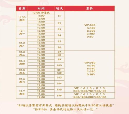本次門票銷售分為三輪次:11月14日第一輪次門票將正式開售,本輪次將釋放出全部全程通票、全部預賽階段門票以及40%循環賽階段門票,其中全程通票共50張,持票可觀看預賽到決賽所有比賽,座席為1號球台視野最佳VIP檔座席區。
