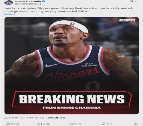 比爾需要6-9個月才能重返賽場,他在快船的合同是2年1100萬美元,2026-27賽季是價值562萬美元的球員選項。隨著此次重傷,比爾肯定會執行球員選項,下賽季仍然在快船效力。以比爾本賽季表現,試水自由市場隻能拿底薪。