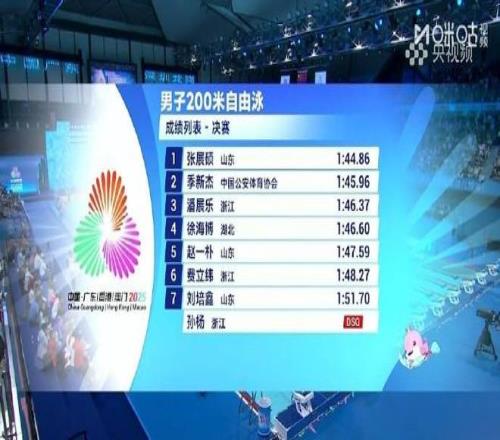 全運會男子200米自由泳:張展碩奪冠,潘展樂第三、孫楊犯規_24直播網