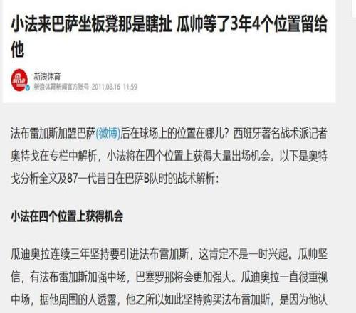 23. 新浪體育2011-8-16小法來巴薩坐板凳那是瞎扯 瓜帥等了3年4個位置留給他