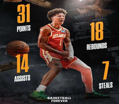 拿上一場對陣爵士的比賽來說,傑倫約翰遜打出了生涯最強的一場比賽:全場出戰41分鍾,投籃19中10,三分5中4,罰球11中7,拿下31分18籃板14助攻7搶斷的準四雙,正負值+16全隊最高。