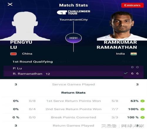 另一名網球選手——23歲的陸鵬宇則因涉嫌違反《網球反腐敗計劃》(TACP)同樣被嚴肅處罰。他在今年廣州挑戰賽資格賽中打出了引人疑慮的懸殊比分——首盤僅得7分、次盤僅得3分,最終“雙蛋”告負。