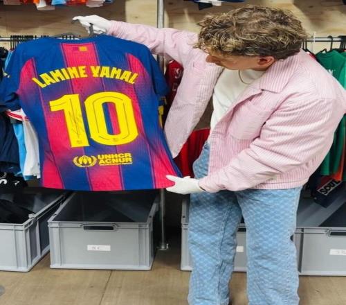 附近還有哈裏-凱恩與貝林厄姆穿過並簽名的球衣,讓人不禁想象它們背後的價值。最吸引我的是一件由亞馬爾穿過並簽名的球衣。這類球衣一旦上架,往往能拍出不小的數字,這並不令人意外。隨著足球紀念品甚至整個體育紀念品市場的不斷升溫,球衣、球鞋、收藏卡等物品的價格屢屢飆升至數萬英鎊。