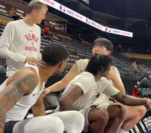 無論是賽前熱身、比賽過程中,還是暫停期間,都能看到楊瀚森獨立用英語與隊友、教練溝通的身影。這恰恰說明,他的英語水平一直在穩步提升。