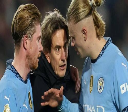 這裏有一張照片:您站在現代足球界的兩位巨星之間——哈蘭德和德布勞內