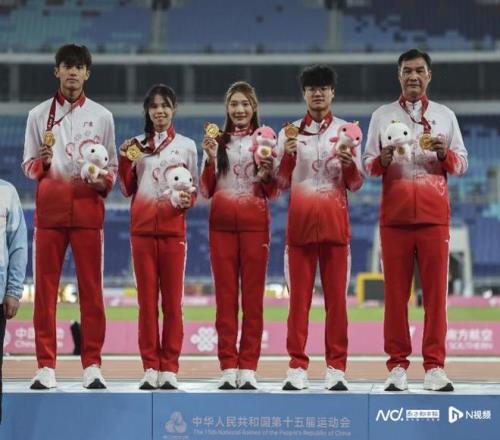 11月16日晚,十五運會田徑比賽4×400米混合接力舉行頒獎儀式。在前一晚的比賽中,由梁寶棠、孔瑩鎣、何宇、莫家蝶組成的廣東隊以0.12秒的優勢力壓四川隊獲得冠軍。這是廣東田徑隊在十五運會上取得的首枚金牌。