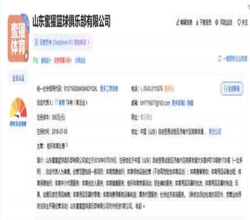 公開資料顯示,山東蜜獾籃球俱樂部成立於2018年,總部位於濟南,注冊資本500萬元,法人代表崔賽。該公司經營範圍:體育競賽組織、賽事策劃、體育用品製造與銷售等。