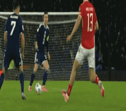 進入傷停補時階段,場上比分依舊是2-2,留給蘇格蘭的時間不多了,關鍵時刻,世界波又來了。