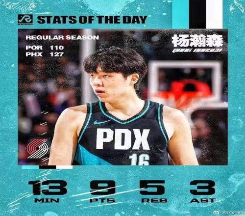 媒體人麥穗豐:剛結束的一場NBA常規賽,開拓者110比127輸給太陽,但楊瀚森迎來了爆發。替補出戰13分08秒,楊瀚森7投4中拿到9分5籃板3助攻1封蓋的數據,比賽內容很豐富,把個人技術特點展現得淋漓盡致。