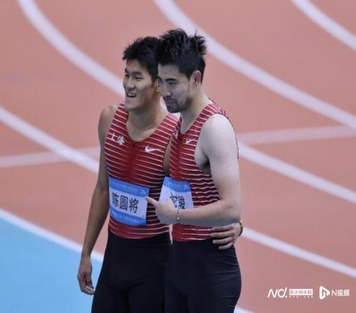 謝文駿與師弟陳圓將。在2025年全國田徑錦標賽上,19歲的陳圓將跑出13秒18的個人最好成績,中國男子短跨時隔多年再次打開13秒20大關。