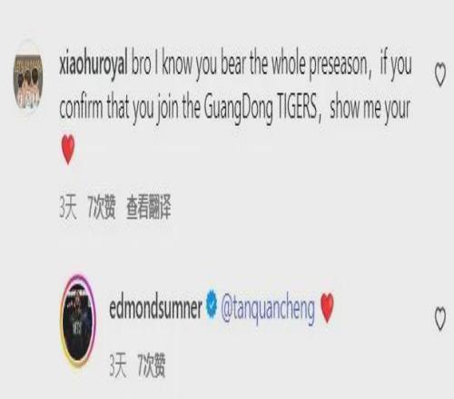 熱心網友:“老鐵,如果你確認自己加盟廣東男籃的話,就貼一個小紅心。”
