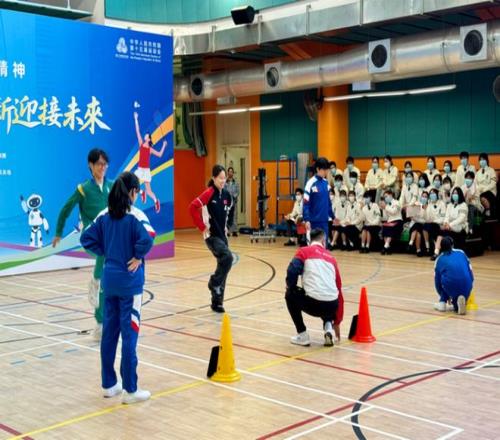 11月19日下午,“中華體育精神頌丨十五運站”澳門站活動在澳門聖若瑟教區中學第六校舉行。本次活動以“體育公開課”的形式,通過“AI賦能體育”教學演示、世界冠軍互動教學等形式,展現中華體育精神對青少年成長的幫助以及科技進步為體育教育帶來的全新可能。