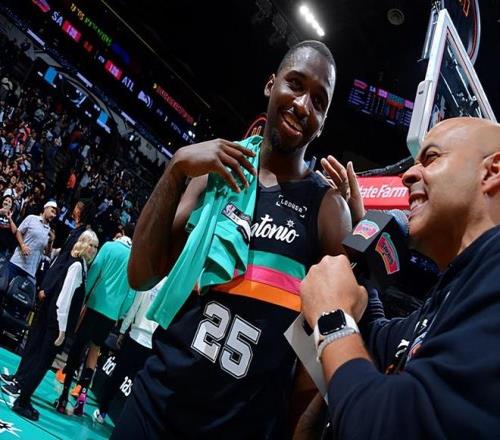 本場比賽中,難得得到了不少出場時間的馬刺的替補後場新星大衛-瓊斯-加西亞(David Jones Garcia)的表現非常搶眼,展現出了超強的個人能力。瓊斯全場出場18分33秒,投籃7中5,三分線外1中1,罰球2中1,得到了12分5籃板6助攻3搶斷1蓋帽的數據,還有1次失誤和1次犯規,正負值更是達到了全場最高的+25。瓊斯展現出了全麵的得分能力,他不僅突破犀利,終結能力出色,而且他也具備一定的外線投射能力,對手也是沒有辦法對他進行有效地限製。不僅如此,瓊斯還有著相當不錯的傳球能力和組織能力,也同樣起到了很好的效果。除此之外,瓊斯也證明了自己有著超強的個人防守能力,他的搶斷能力也是頂級水平。瓊斯在有限的出場時間內刷出了極高的存在感,為球隊的勝利做出了巨大的貢獻,+25的正負值更是能夠說明他在場上時比賽的局麵有多出色。