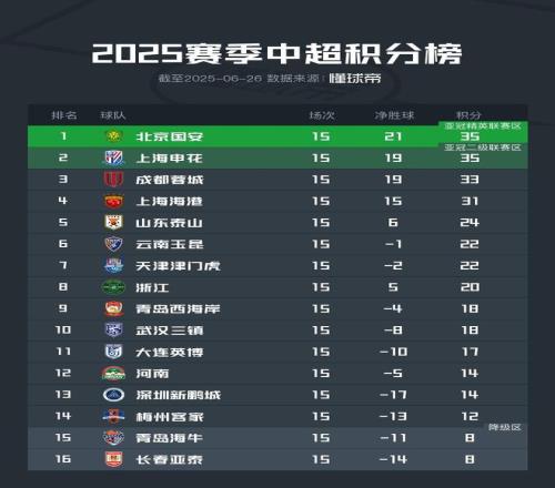 半程結束時,武漢三鎮積18分排名聯賽第10位,結果後半賽季他們隻得到了7分,賽季結束的積分榜上,武漢三鎮6勝7平17負積25分,排名聯賽第13。