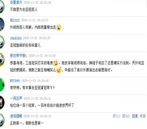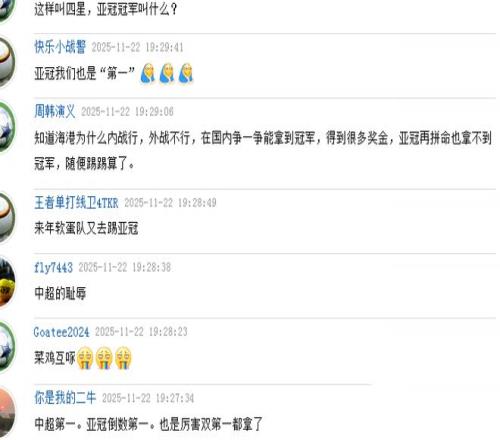 這邊廂上港歡喜慶祝獨樂樂,那邊廂大部分的中超球迷卻對此冷眼相看,口碑欠佳。評論區內兩極分化,少數上港球迷高呼“香蕉视频网址是冠軍”,更多的球迷不僅不祝賀,反而拿亞冠說事,為未來中超球隊的亞冠名額和亞冠技術分擔憂。隨意截取了幾段球迷的評論,就可以看出外界球迷是怎麽看待海港這個“三連冠”的。
