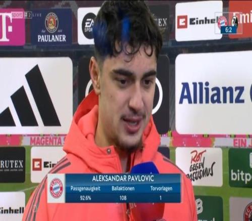 當地時間11月22日,拜仁慕尼黑在德甲中以6-2的比分戰勝弗賴堡。賽後,拜仁慕尼黑球員帕夫洛維奇接受了采訪。