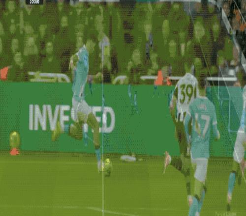 曼城的球迷僅僅高興了2分鍾,紐卡斯爾卷土重來,沃爾特馬德頭球擺渡,吉馬良斯頭球擊中橫梁,巴恩斯補射,梅開二度。