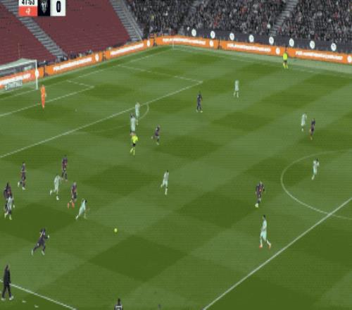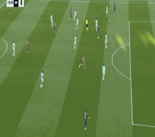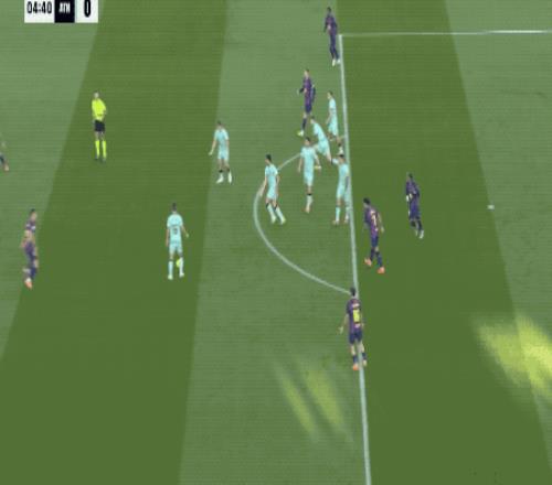 上半場結束,巴薩2-0暫時領先。下半場開始隻有4分鍾,巴薩前場持續施壓完成搶斷。