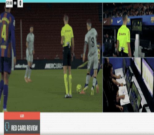 落後的畢爾巴鄂球員出現情緒問題,桑謝特背後出腳,氣急敗壞使出全力踢在費爾明的腿上,VAR介入,裁判取消黃牌,直接向桑謝特出示紅牌。
