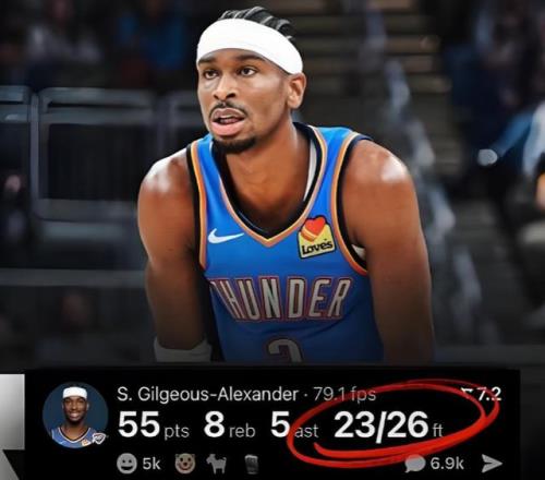新賽季至今,亞曆山大累計得到580分,高居聯盟第一;先後得到15次單場30+,聯盟第一;先後8次在30分鍾內單場砍下30+,NBA曆史第二,僅次於字母哥一人。