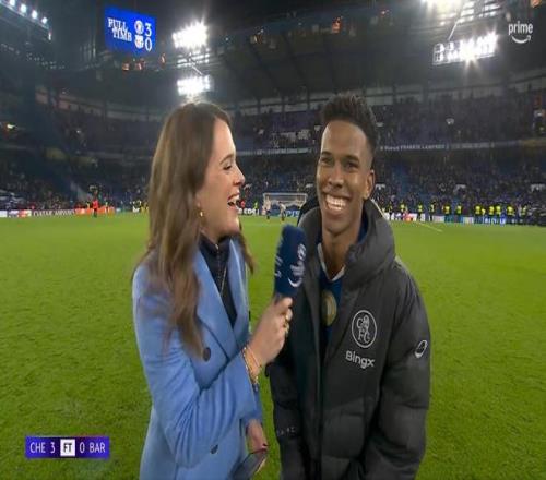 歐冠聯賽階段第5輪一場較量,切爾西主場3-0完勝巴薩。攻入一球的巴西小將埃斯特旺賽後接受了亞馬遜Prime的采訪。