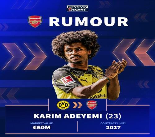 按照德轉的說法,在阿德耶米現有合同2027年到期的情況下,多特蒙德可能在明年夏天麵臨出售球員的壓力,在這種情況下,阿森納正在考慮追逐這位現年23歲的德國球星。