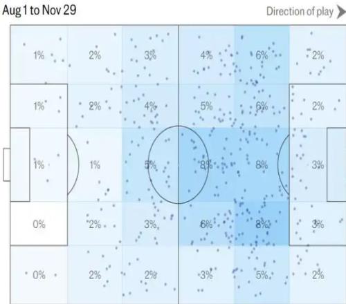 本場他完成44次傳球,僅失誤2次,成功率高達95%。這與本賽季對陣布倫特福德(76%)和水晶宮(84%)時的低迷形成了鮮明對比。