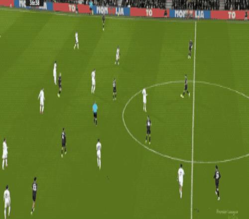 第37分鍾,哈蘭德回撤到了中場附近送出妙傳,賴因德斯輕巧破門,曼城取得了兩球的領先。