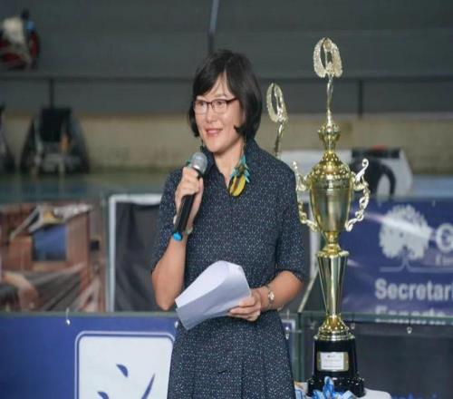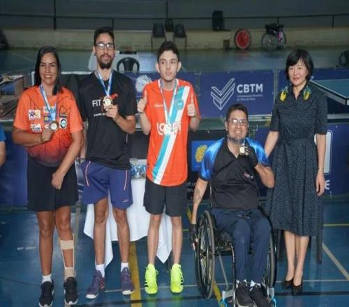 周詠梅代表駐巴西使館向巴西利亞聯邦區乒乓球協會贈送體育用品,並為聯邦區年度最佳奧林匹克和殘奧俱樂部頒發獎牌。