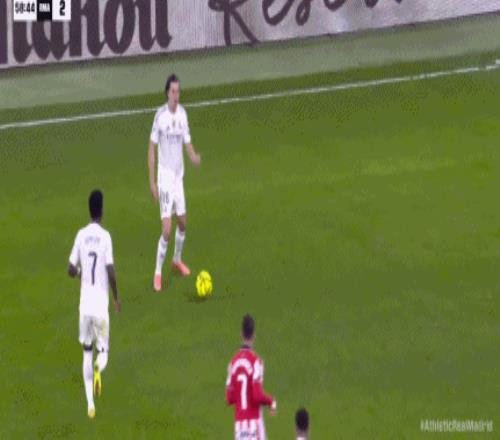 第33分鍾,巴爾韋德右側斷球直塞,維尼修斯過掉出擊的門將後小角度低射擊中立柱;第38分鍾,米利唐後場一腳精準長傳,維尼修斯反越位單刀被烏奈-西蒙撲出;第42分鍾,皇馬打出行雲流水配合,貝林厄姆耐心組織轉移,阿諾德下底傳中,姆巴佩頭球擺渡,卡馬文加近距離頭球接力破門,2:0!