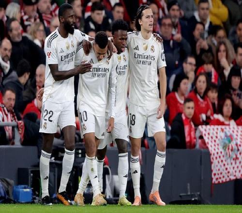 畢爾巴鄂競技上賽季拿到西甲前五,得以重返歐冠,不過也因為受限於雙線作戰,巴斯克雄獅成績明顯下滑;為了避免繼續不勝,阿隆索這場比賽變陣4-4-2:維尼修斯、姆巴佩雙前鋒;貝林厄姆、巴爾韋德、卡馬文加、楚阿梅尼搭檔中場組合;阿諾德、米利唐、呂迪格、阿爾瓦羅-卡雷拉斯聯袂防線,庫爾圖瓦鎮守球門。